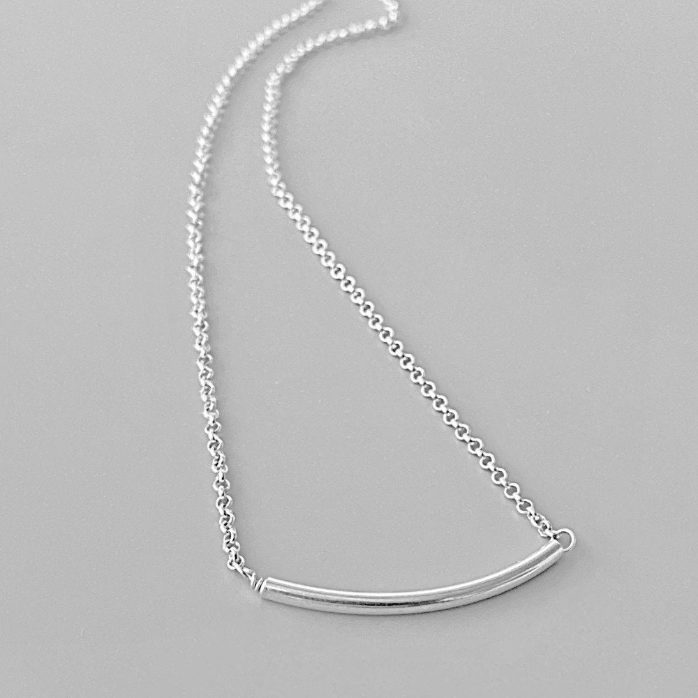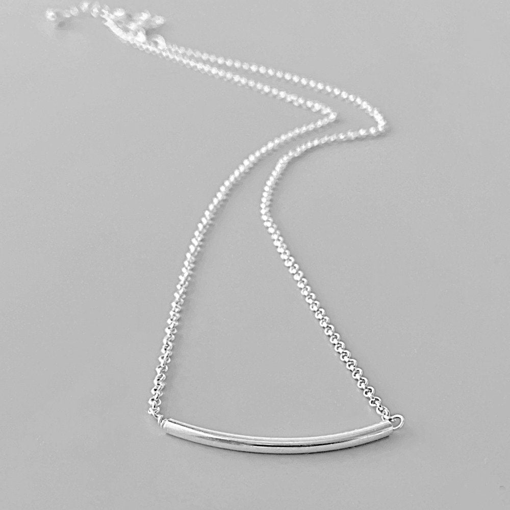 This sterling silver bar necklace makes a great everyday necklace. This dainty sterling silver necklace is great on its own or layer it with other necklaces for a fun look. The smooth sterling silver bar is 1 1/4 inches long and the sterling silver chain is 18 inches in length.